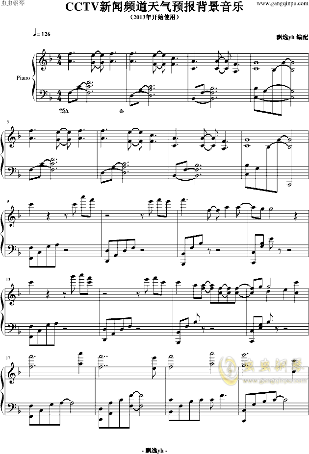 Cctv新闻频道天气预报背景音乐钢琴谱 未知 Cctv新闻频道天气预报背景音乐 曲谱网
